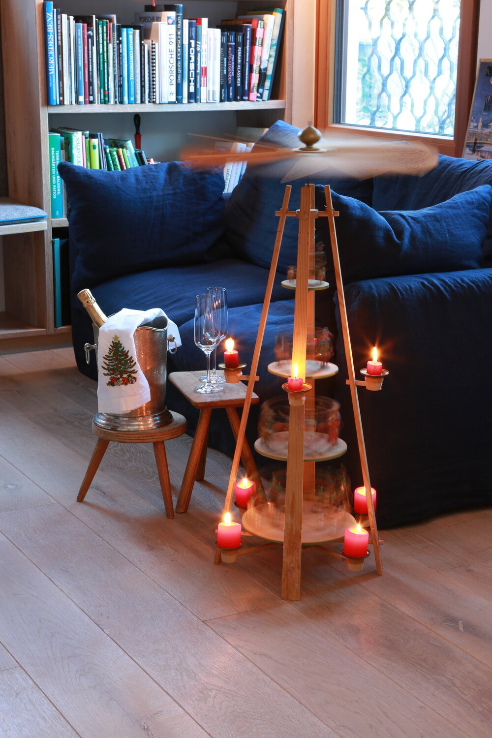 Die wunderschöne, klassische Holzpyramide stammt aus dem Erzgebirge und passt perfekt in die Weihnachtszeit.