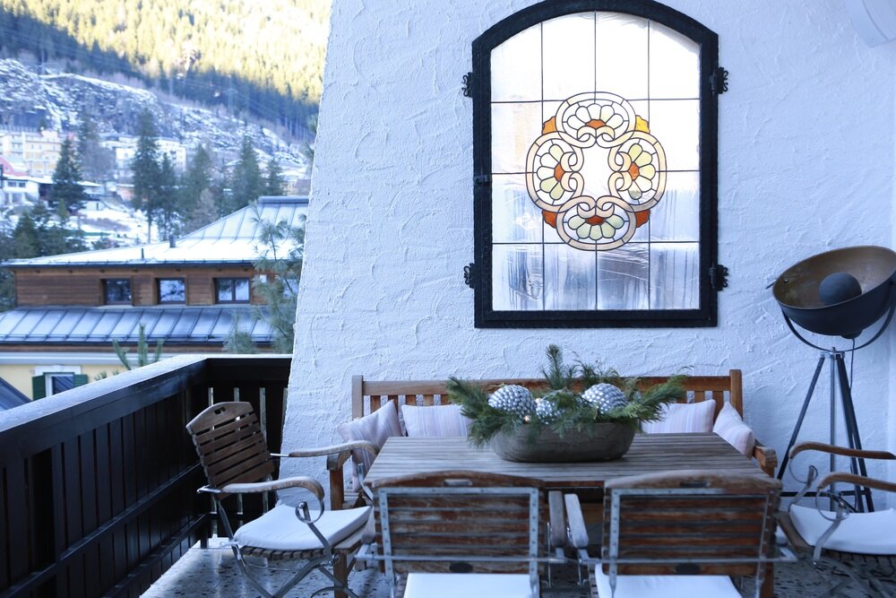 Das Haus wurde 1889 vom damals bedeutendsten Baumeister der Region, Angelo Comini, erbaut; der große Umbau inklusive Anbau der wunderschönen, überdachten Terrasse haben die Vorbesitzer durchgeführt. Die Neu-Gasteiner Vanessa Golle und Roland Schlager mit ihren Kindern haben nach Übernahme des Hauses die Außenmauern nicht mehr verändert, sondern vor allem die Elektrik erneuert und Zimmer zusammengelegt. Das Ergebnis ist ein besonders wohnliches, schickes Zuhause, das die Familie mit viel Gastfreundlichkeit belebt.